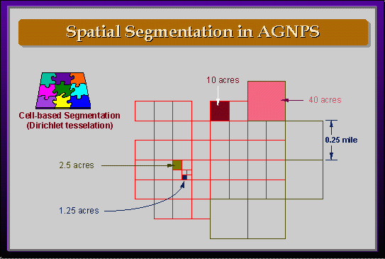 cell sizes of 40 acres is normally used to pixelize the watershed. In a 40-acre